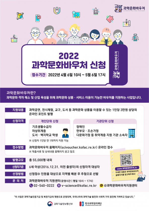 [세종타임즈] 과학기술정보통신부와 한국과학창의재단은 소외지역·계층의 과학문화 향유 기회 확대를 위한 2022년 과학문화바우처 지원 사업을 착수한다고 밝혔다.