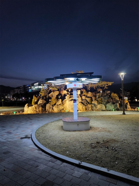 [세종타임즈] 예산군 내포문화사업소는 친환경 저탄소 녹색도시 조성사업의 일환으로 내포신도시 애향공원에 스마트 솔라트리를 설치했다.