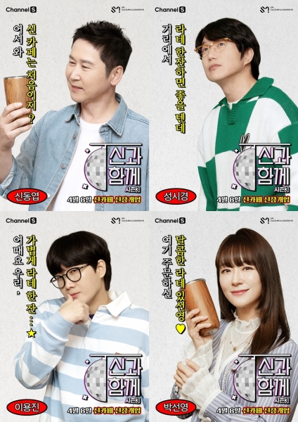 오늘 금요일 저녁 8시 첫 방송되는 채널S의 예능 프로그램 ‘신과 함께 시즌3’ 측은 8일 미스터리 ‘신카페’의 4MC 신동엽, 성시경, 이용진, 박선영의 스페셜 포스터를 공개했다.