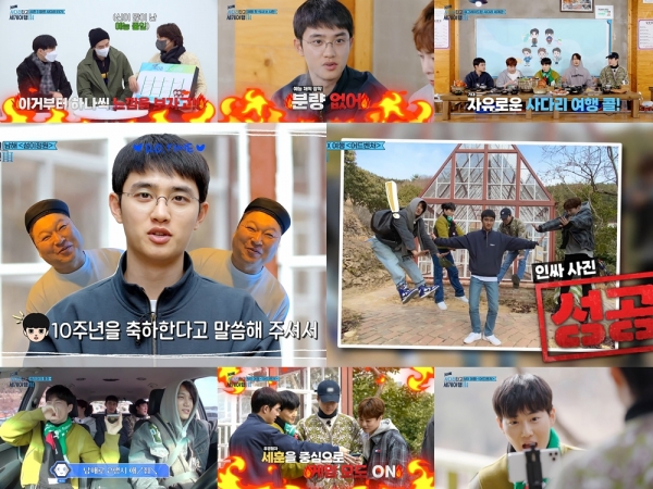 “예능 새싹에서 풀잎이 되는 모습을 보여 줄 수 있겠구나”, “방송되겠다”며 '예능 부심'을 드러낸 카이는 다수의 예능 경험자로서 리더십을 드러내며 멤버들을 이끌었다.