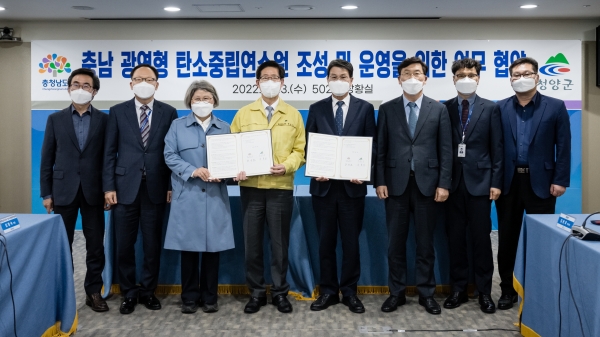 [세종타임즈] 청양군이 지난 13일 충남도와 광역형 탄소중립 연수원 운영 및 조성을 위한 업무협약을 맺고 적극적인 협력을 약속했다.