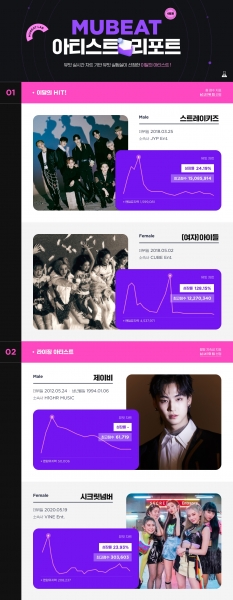 뮤빗은 다양한 팬덤 서비스를 기반으로 전 세계 710만 다운로드를 달성하며 글로벌 케이팝 팬덤 활동의 중심으로 자리 잡은 만큼, 데이터를 바탕으로 매월 케이팝의 성과를 수치화해서 아티스트들의 입지와 인기를 기록하고 발전시키는데 힘쓰고 있다.