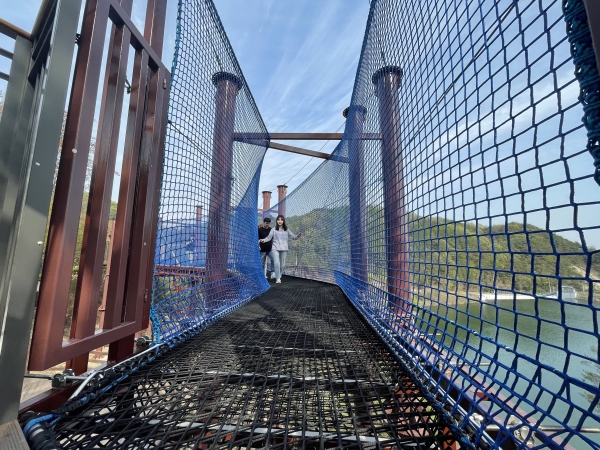 별도의 안전 장비 없이 모든 과정을 체험할 수 있고 지상에서 최대 10m 높이 위의 네트 브리지를 걸으며 아름다운 천장호 경관까지 즐길 수 있다.