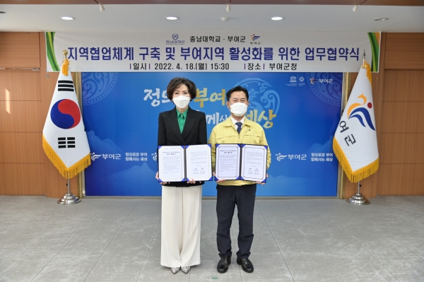 [세종타임즈] 부여군은 지난 18일 충남대학교와 부여군 미래 발전을 위한 지역협업체계 구축 및 지역 활성화 업무협약을 체결했다.