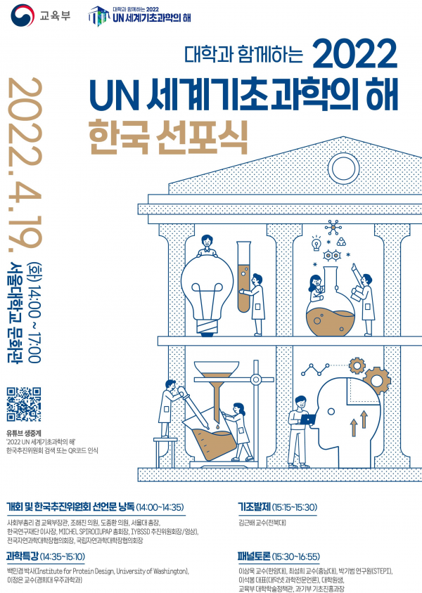 [세종타임즈] 교육부는 ‘대학과 함께하는 2022 국제연합 세계기초과학의 해 한국 선포식’을 4월 19일 오후 2시, 서울대학교 문화관에서 개최한다.