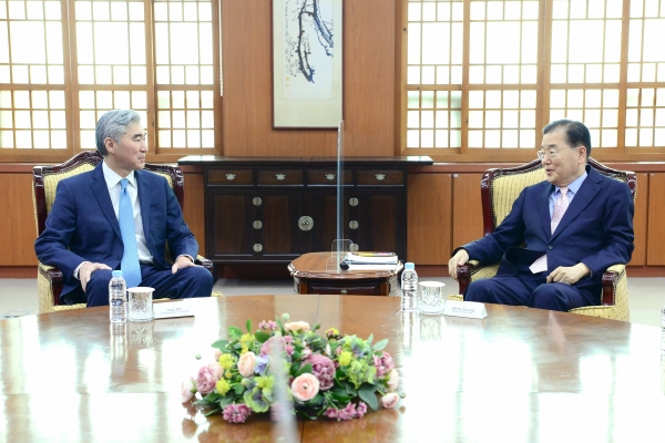[세종타임즈] 정의용 외교부 장관은 19일 오전 방한 중인 성 김 미국 대북특별대표를 접견했다.