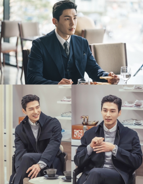 극중 SF 그룹과 뗄 수 없는 장소인 호텔 조식 자리에서는 단정하게 쓰리피스 슈트를 차려 입고 있어 고급진 아우라를 느낄 수 있다.