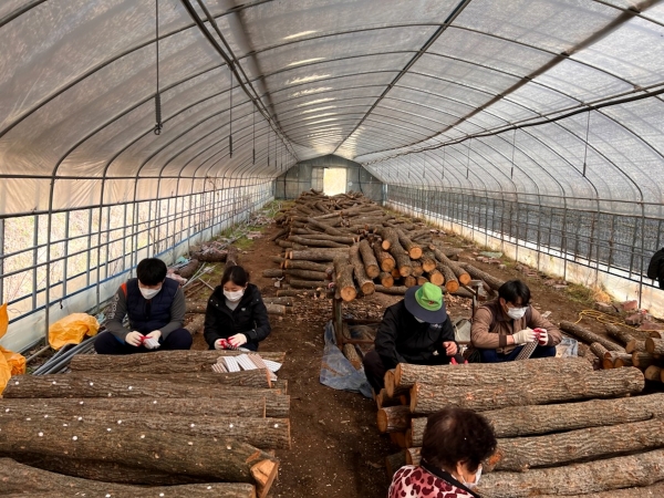 지난 7일 표고버섯 재배 농가의 종균 넣기 작업을 도운 공무원들은 계속해서 고추 재배 농가 돕기에 나설 예정이다.