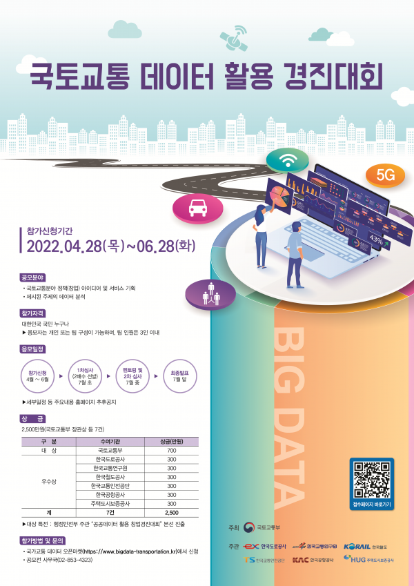 대회 기간은 4월 28일부터 6월 28일 오후 6시까지이며 자세한 사항은 국가교통데이터오픈마켓에서 확인할 수 있다.