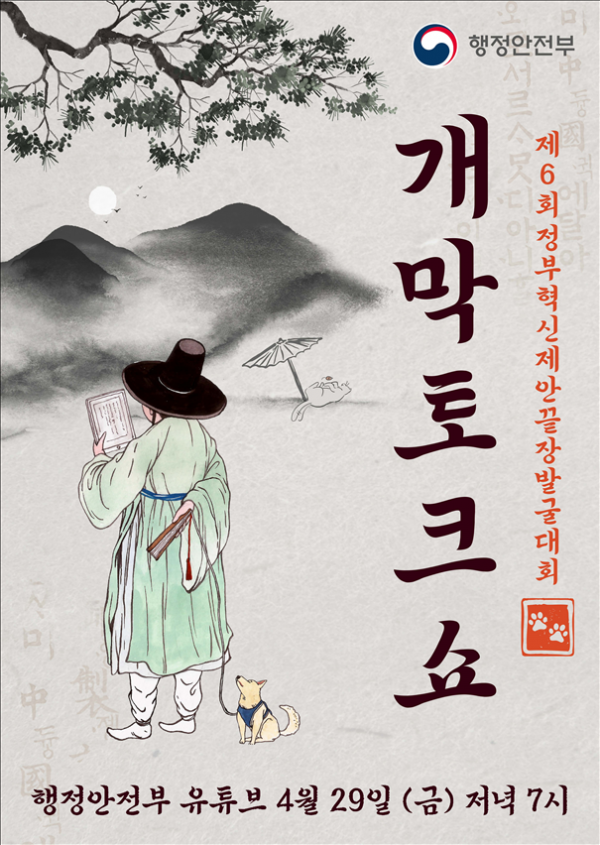 [세종타임즈] 행정안전부는 오는 4월 29일부터 5월 14일까지‘소유를 너머 공존’을 주제로 ‘제6회 정부혁신제안 끝장발굴대회’를 개최한다고 밝혔다.