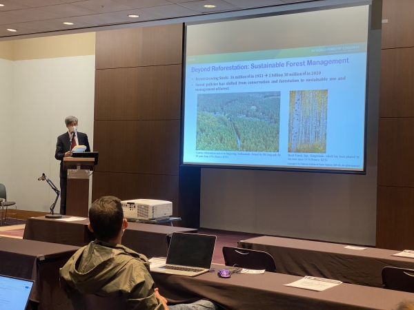 과거, 개발도상국의 위치에서 단기간에 산림을 녹화하는 데 성공한 ‘세계적 재조림 모델’로서 대한민국의 사례가 가진 가치를 설명하고 국제사회에 우리의 산림녹화 성공 경험을 공유하기 위해 국립산림과학원 미래산림전략연구부 배재수 부장이 발표자로 나섰다.