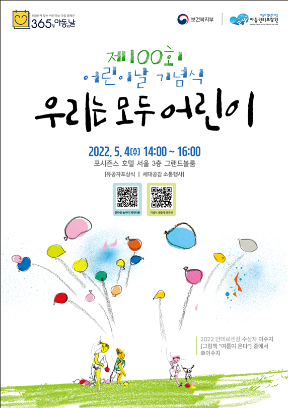 [세종타임즈] 보건복지부는 제100회 어린이날을 맞아 5월 4일 오후 2시, 포시즌스 호텔에서 ‘2022년 제100회 어린이날 기념식’을 진행했다.