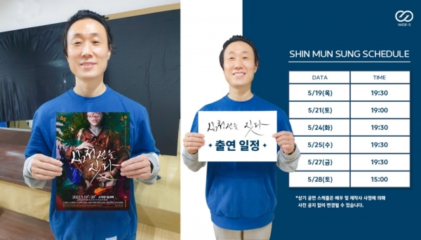 신문성이 속한 와이드에스컴퍼니 측은 17일 신문성이 연극 ‘심청전을 짓다’ 포스터를 들고 ‘셀프 홍보대사’로 변신한 모습을 담은 사진을 공개했다.