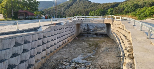 군은 공사비 16억원을 투입해 통수단면 확대, 제방 보강, 구조물 6개소 설치했다.
