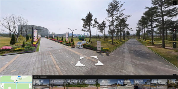 수목원 거리뷰는 네이버 지도에서 ‘국립세종수목원’을 검색 후 거리뷰 아이콘을 클릭하면 거리뷰 서비스 제공구간이 파란색으로 활성화되며 원하는 지점을 클릭하면 온라인으로 수목원을 관람할 수 있다.
