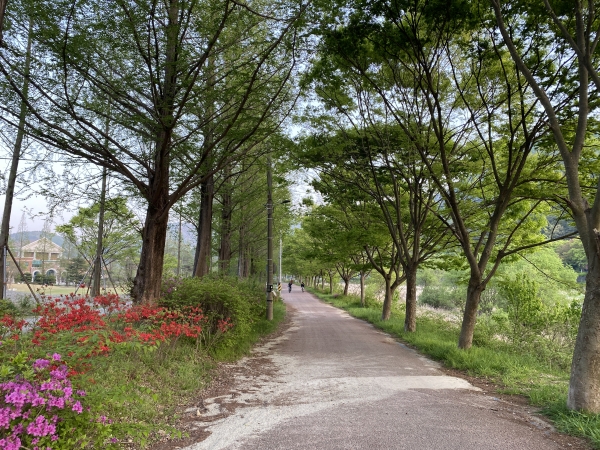 산책길 곳곳엔 원두막과 벤치 등이 있어 한가롭게 반려견과 산책을 즐기기에 적합하다.