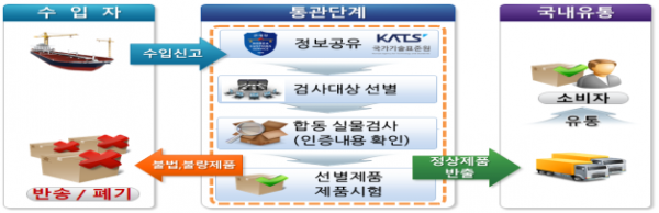 관세청과 국표원은 협업을 통해 안전성이 확보되지 않은 불법 수입제품을 통관단계에서 차단해 위해제품으로부터 국민의 생명을 보호하고 국민이 안전한 사회에서 생활할 수 있도록 적극 노력하고 있다.