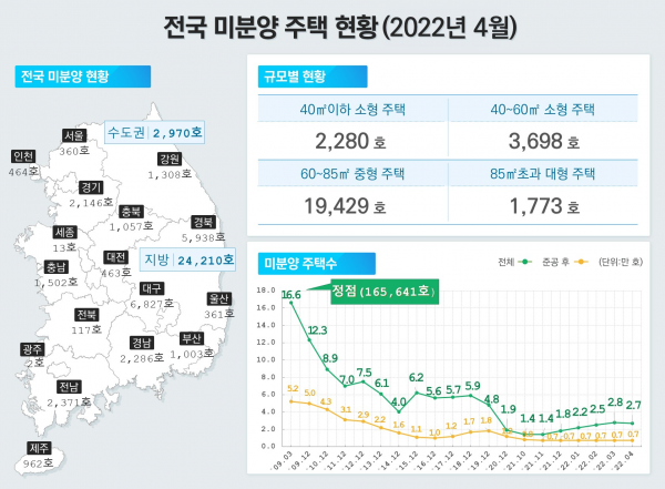 [세종타임즈] ‘22.4월말 기준 전국의 미분양 주택이 총 27,180호로 집계됐으며 전월 대비 2.8% 감소했다.