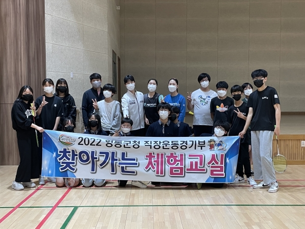 이 영동군청 배드민턴부 선수들은 지역내 초·중·고 학교를 방문하며 찾아가는 배드민턴 체험교실을 운영해 시범경기와 기초 기술 지도로 학교체육을 활기차게 만들고 있다.