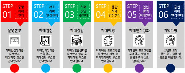 각 체험관은 치매 관리사업 안내, 치매 조기검진, 상담, 치매 예방활동, 인지 강화 프로그램 체험, 기억 다방을 주제로 운영된다.