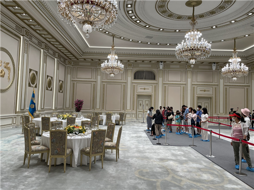 [세종타임즈] 행정안전부 대통령기록관은 국빈 만찬 등 대규모 행사가 열렸던 청와대 영빈관의 모습을 체험할 수 있도록, 영빈관 1층에 지난 2010년 8월 26일 볼리비아 대통령을 초대했던 국빈 만찬 식탁을 지난 5월 28일부터 재현해 일반 국민에게 공개하고 있다.