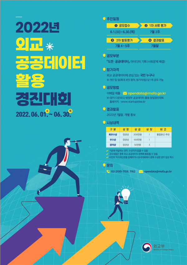 [세종타임즈] 외교부는 공공데이터를 활용한 국민의 창의적인 아이디어를 수렴해 수요자 중심의 공공데이터 정책을 추진하기 위해‘2022년 외교 공공 데이터 활용 경진대회’를 개최한다.
