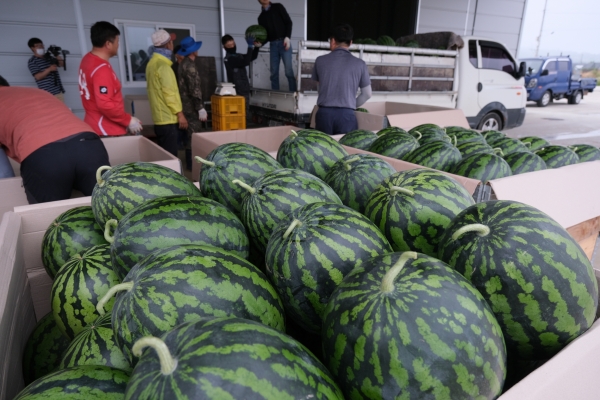 이 지역 수박은 당도가 13브릭스가 넘고 과육이 부드러워 전국 소비자 입맛을 사로잡고 있다.