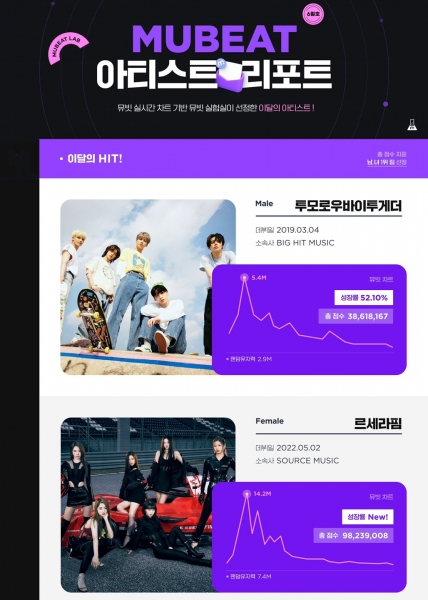 글로벌 팬덤 플랫폼 뮤빗의 팬덤실험실이 아티스트 리포트 6월 호를 발표했다.