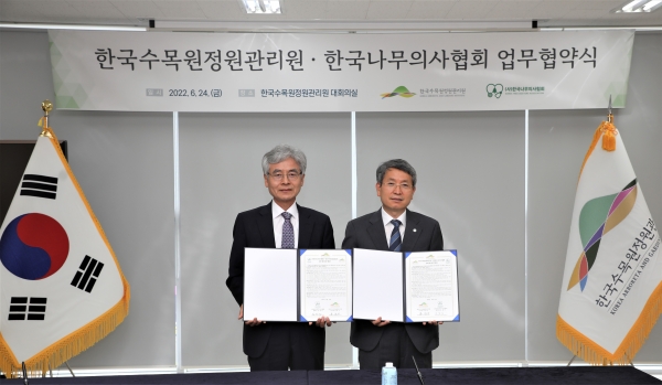 [세종타임즈] 산림청 산하 한국수목원정원관리원이 한국나무의사협회와 6월 24일 ‘나무의사 교육 활성화 및 수목복지서비스 확대를 위한 업무협약’을 체결했다.