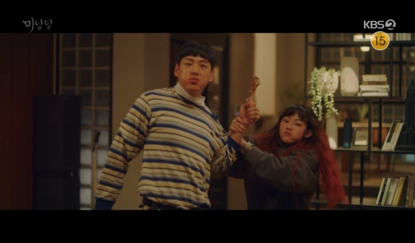 하지만 카페 유니폼을 벗은 공수철은 화려한 패딩 위로 전대를 두른 채 남한준과의 공조 수사에 나서며 훈훈함을 쏙 뺀 반전 비주얼로 웃음을 안겼다.