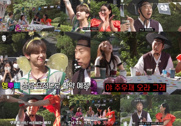 이 날 일일 ENFP 체험에 나선 박명수는 인간 '엥뿌삐' 손동표의 요란한 등장에 “뭐 하는 사람이요”며 ISTP 특기인 낯선 사람과 거리 두기를 하는 모습으로 험난한 엥뿌삐 상담소를 예고했다.
