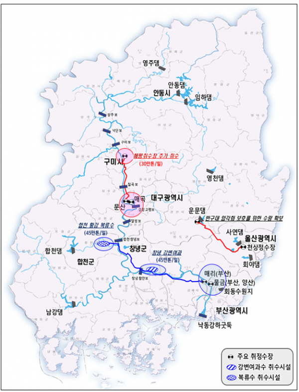 이번 사업은 낙동강 유역 취수원의 다변화를 통해 부산, 대구, 울산, 경북, 경남 등 낙동강 유역 700만 주민의 먹는 물 안전을 확보하기 위한 것으로 정부와 한국수자원공사가 총사업비 2조 4,959억원을 투입해 2028년 준공을 목표로 추진될 예정이다.