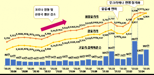 특히 유가와 관련된 ‘기름값’, ‘경유가격’, ‘주유소 가격비교’ 등의 검색량이 크게 증가한 것으로 나타났다.