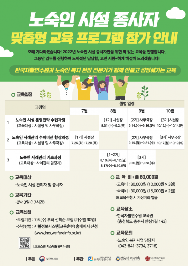 이번 교육은 보건복지부가 2021년 한국자활연수원에 의뢰해 실시한 노숙인시설 종사자의 현장 수요 및 직무분석 결과를 반영해 마련됐으며 올해 처음으로 실시하는 것이다.