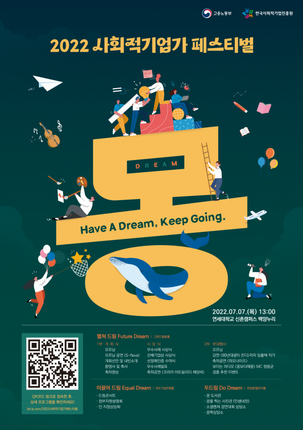 [세종타임즈] 고용노동부와 한국사회적기업진흥원은 7월 7일 오후 1시, 연세대학교 백양누리에서 사회적기업가 육성사업 우수창업팀 등이 참석하는 ‘2022 사회적기업가 페스티벌’을 개최했다.