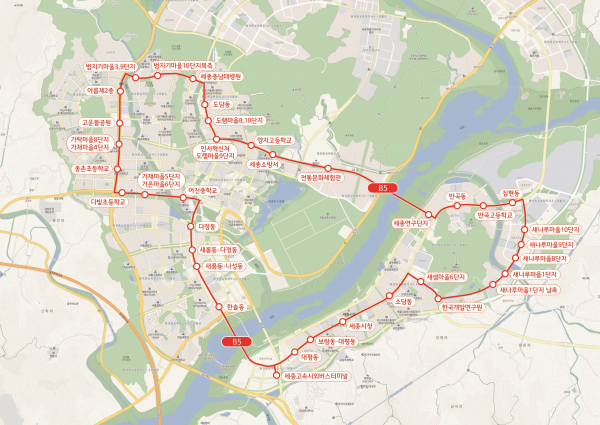 현재 B5노선은 세종터미널∼종촌동∼아름동∼누리동∼소담동∼보람동을 거쳐 세종터미널로 운행 중이나, 아름동∼도담동∼반곡동∼집현동∼소담동∼대평동∼세종터미널로 변경된다.