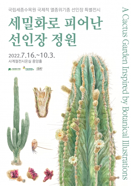 이 기간에는 한국보태니컬아트협동조합 소속 작가 22명이 참여한 선인장 세밀화 작품 60점과 국립생태원의 선인장과 식물 Luetzelb. 등) 27종 27본을 선보인다.