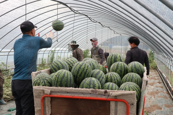 특히 수박은, 도매시장에서 코로나19 등 여러 대내외적으로 어려운 여건 속에서도 1kg당 2,500원선의 가격을 받으며 이름값을 톡톡히 하고 있다.