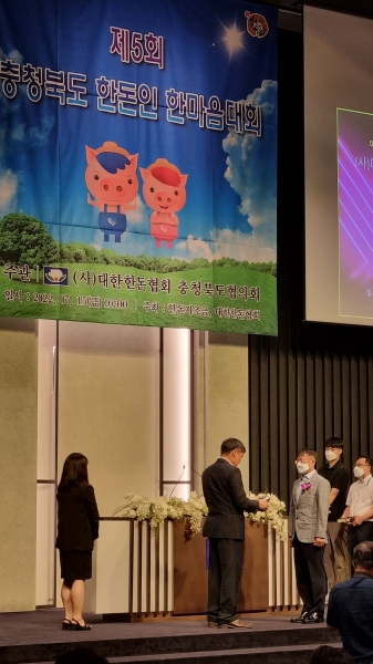 [세종타임즈] 충북 영동군 김재현 가축방역팀장이 지난 15일 제5회 2022 충북 한돈인 한마음대회 및 충북한돈협의회 회장 이·취임식에서 충북도내 한돈인이 참석한 가운데 한돈산업 발전에 헌신적 노력에 대해 대한한돈협회 감사패를 수여받았다.