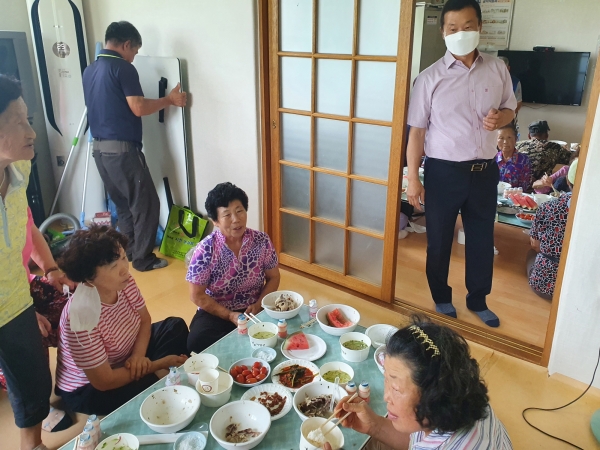 코로나19 예방을 위해 한 자리에 모이지 않고 각 마을 경로당으로 삼계탕 재료를 배분했으며 마을 이장과 부녀회의 도움을 받아 조리해 제공했다.