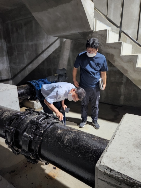 지역 내 배수지 6개소, 가압장 15개소, 소규모 급수시설 7개소 등을 대상으로 진행했으며 배수지 내 배관·변류·전기·통신시설 작동상태 및 제어시스템 상호 연동 점검, 집중호우 시 우려되는 사면, 절개지, 구조물 주변 도로침하 등을 집중적으로 점검했다.
