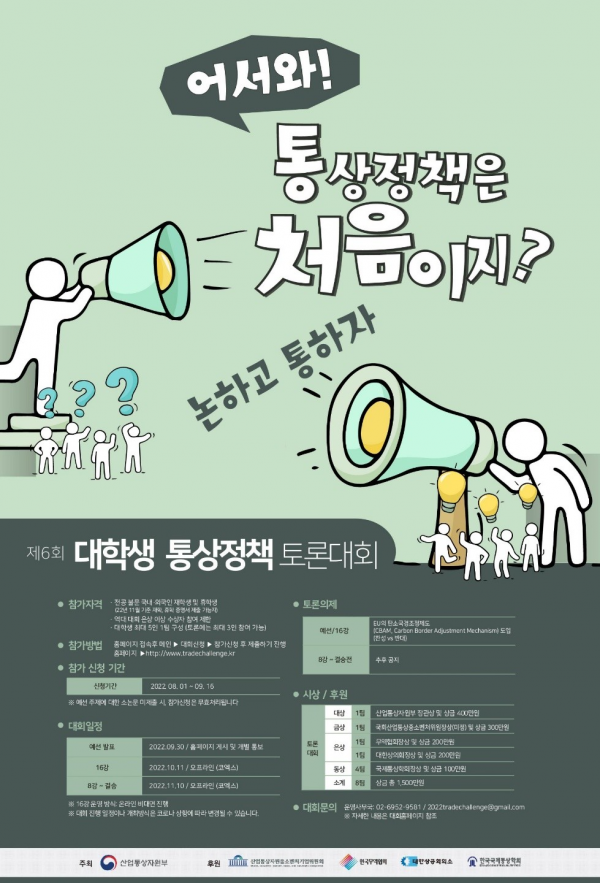 [세종타임즈] 산업통상자원부는 우리나라 통상 현안에 대해 미래 세대와 소통하고 통상 전문인력 양성을 위해 ‘2022년 대학생 통상정책 토론대회’를 개최한다.