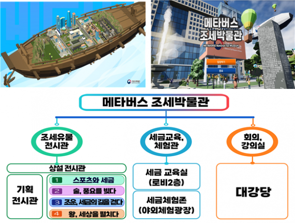 이번에 개통한 ‘메타버스 조세박물관’은 시간적·공간적 한계에서 벗어나 가상공간에서 유물 관람과 체험이 가능하도록 실제 전시된 조세유물을 3D형태로 재현해 확대 기능과 설명 보기 등을 통해 사실감 있게 관람이 가능한 조세유물 전시관과 청소년 수준별 교육 영상과 퀴즈 풀이 등을 활용한 세금교육·체험관, 가상 브리핑과 화상 채팅이 가능한 회의실로 구성했다.