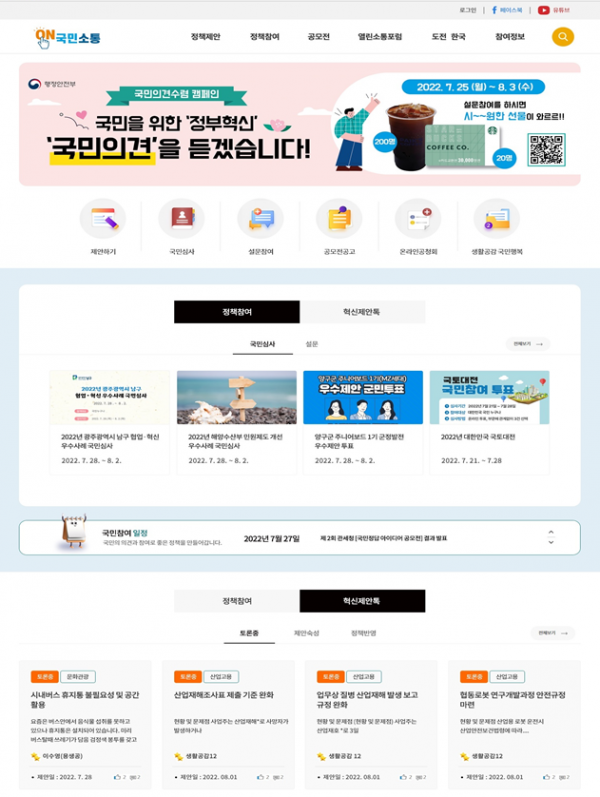 행정안전부는 지난 6월 14일부터 28일까지 14일간 국민 참여·소통의 대표적인 창구로서의 이미지를 포괄하는 새로운 명칭에 대해 온라인 공모를 진행했다.
