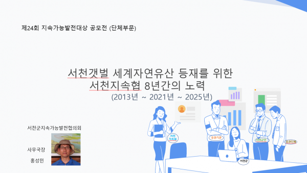[세종타임즈] 서천군지속가능발전협의회는 최근 전국지속가능발전협의회로부터 제24회 지속가능발전대상 공모전 영예의 대상인 대통령상 수상자로 확정됐다는 연락을 받았다고 알려왔다.