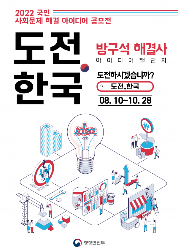 [세종타임즈] 행정안전부는 8월 10일부터 10월 28일까지 국민참여형 사회문제 해결사업인 “도전.한국” 국민 아이디어 공모를 시작한다고 밝혔다.