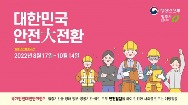 [세종타임즈] 청주시는 오는 17일부터 10월 14일까지 ‘대한민국 안전大전환을 위한 집중안전점검’을 실시한다.