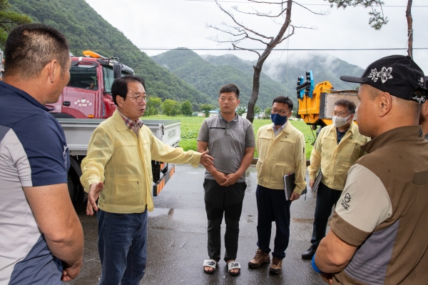 송 군수는 지난 10일 100㎜이상 집중호우로 인한 피해 상황을 보고받고 현장에서 안전사고가 발생하지 않도록 주문했다.