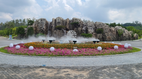 화사한 꽃밭을 배경으로 낮에는 시원한 물줄기가 더위를 날리고 밤에는 은은한 경관조명이 비추며 방문객에게 소소한 즐거움과 힐링의 시간을 전하고 있다.