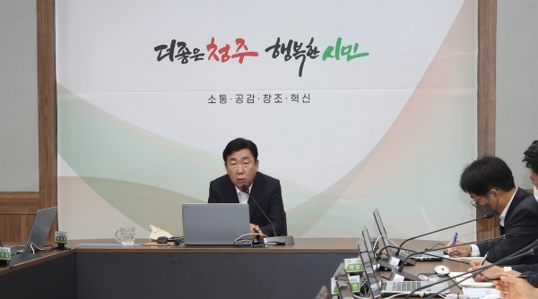 [세종타임즈] 이범석 청주시장은 16일 임시청사 소회의실에서 열린 주간업무보고에서 호우 피해 사전 방지 위해 하수관로 침수예방사업 등 공공사업을 신속하게 추진할 것을 강조했다.